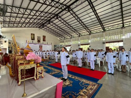 เวลา 08.00 น. พิธีสวดเจริญพระพุทธมนต์และทำบุญตักบาตรถวายพระราชกุศล โดยมีพระครูสุทธิพัฒนกิจ เจ้าคณะอำเภอน้ำขุ่น เป็นประธานฝ่ายสงฆ์
